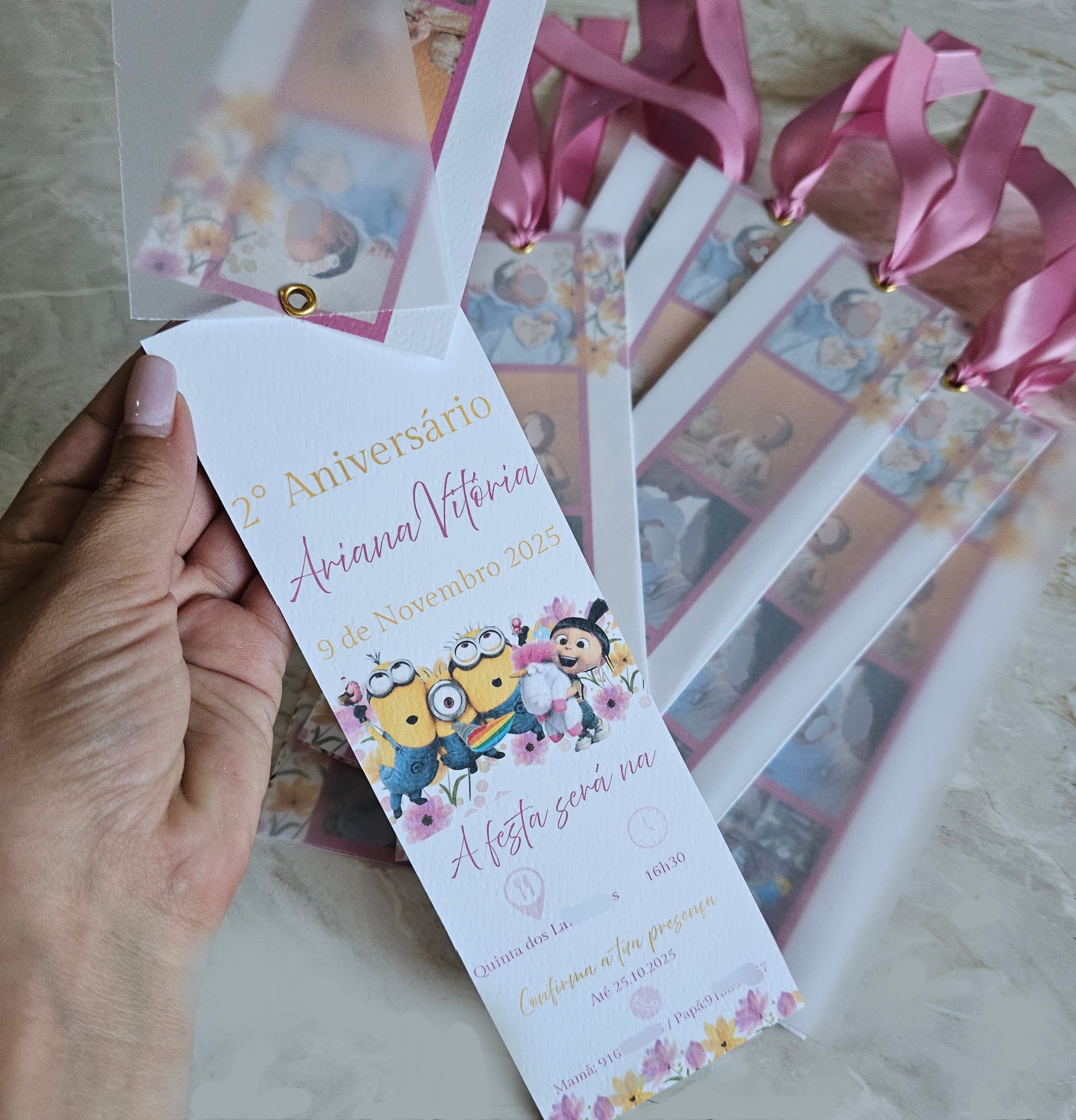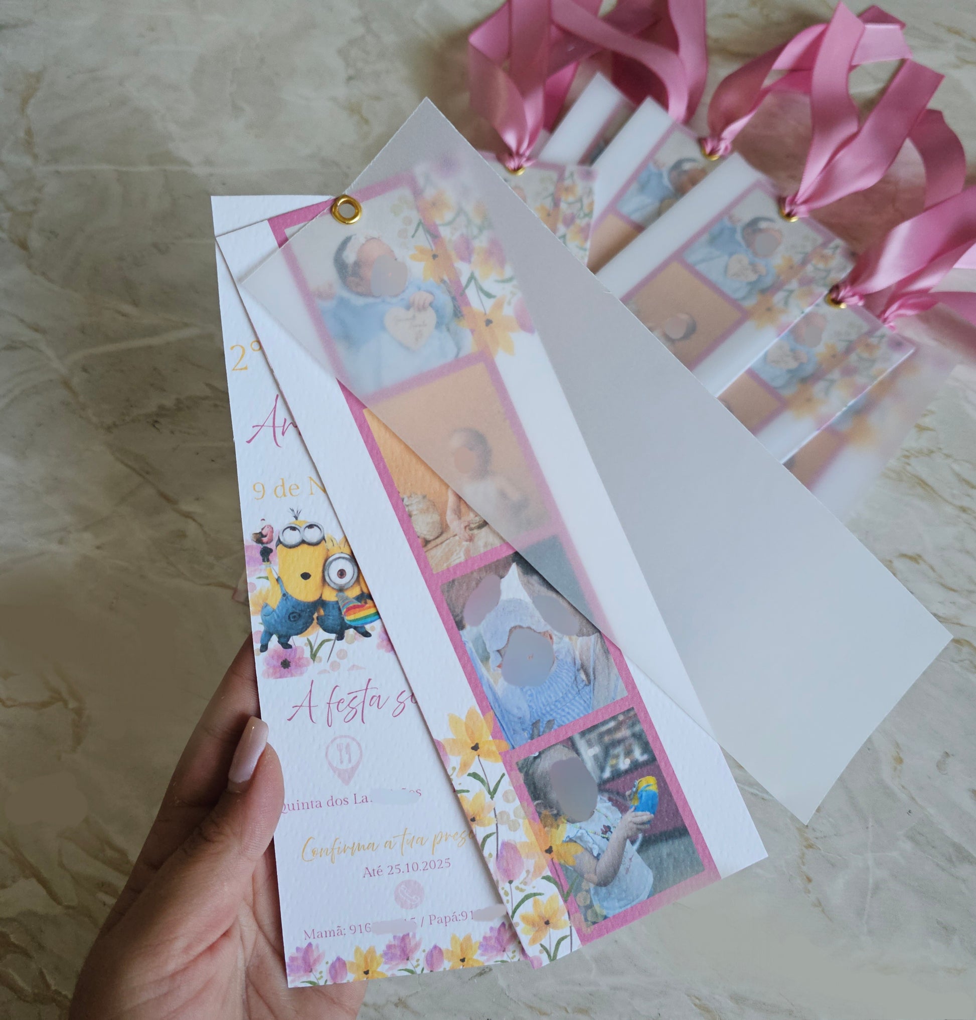 Convite 3 partes impresso em cartolina texturizada 220gr com folha transparência.