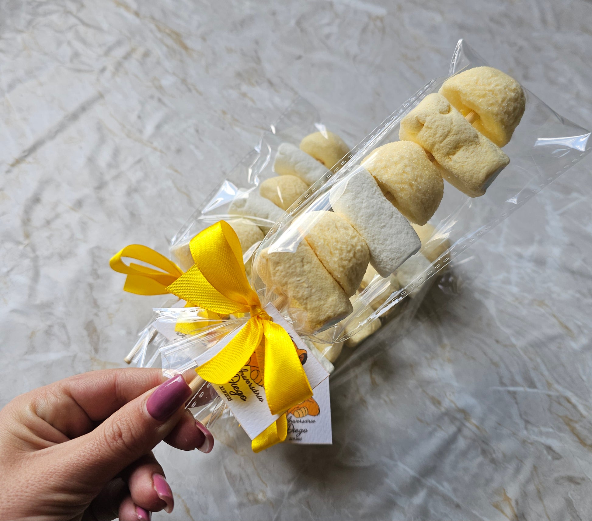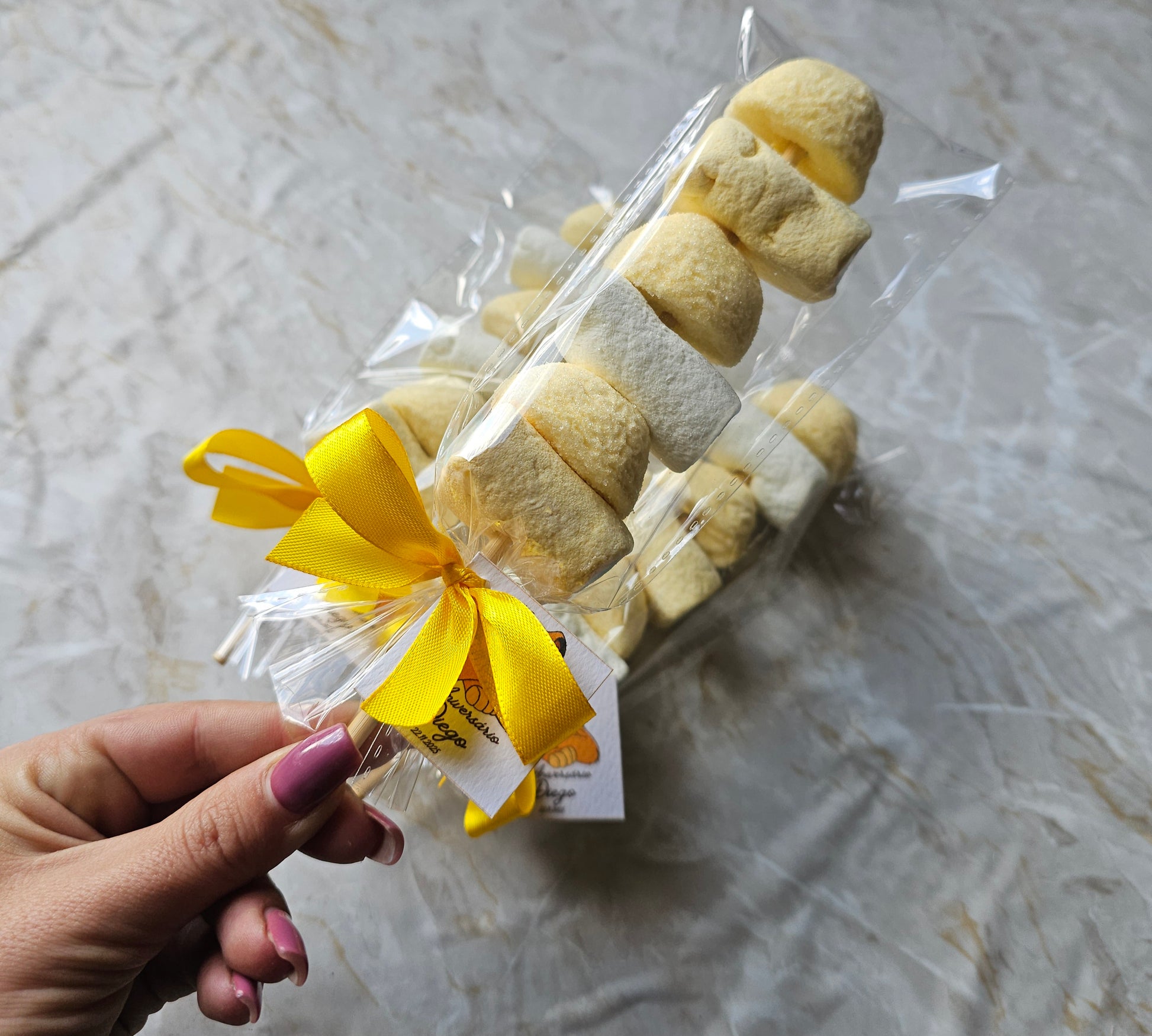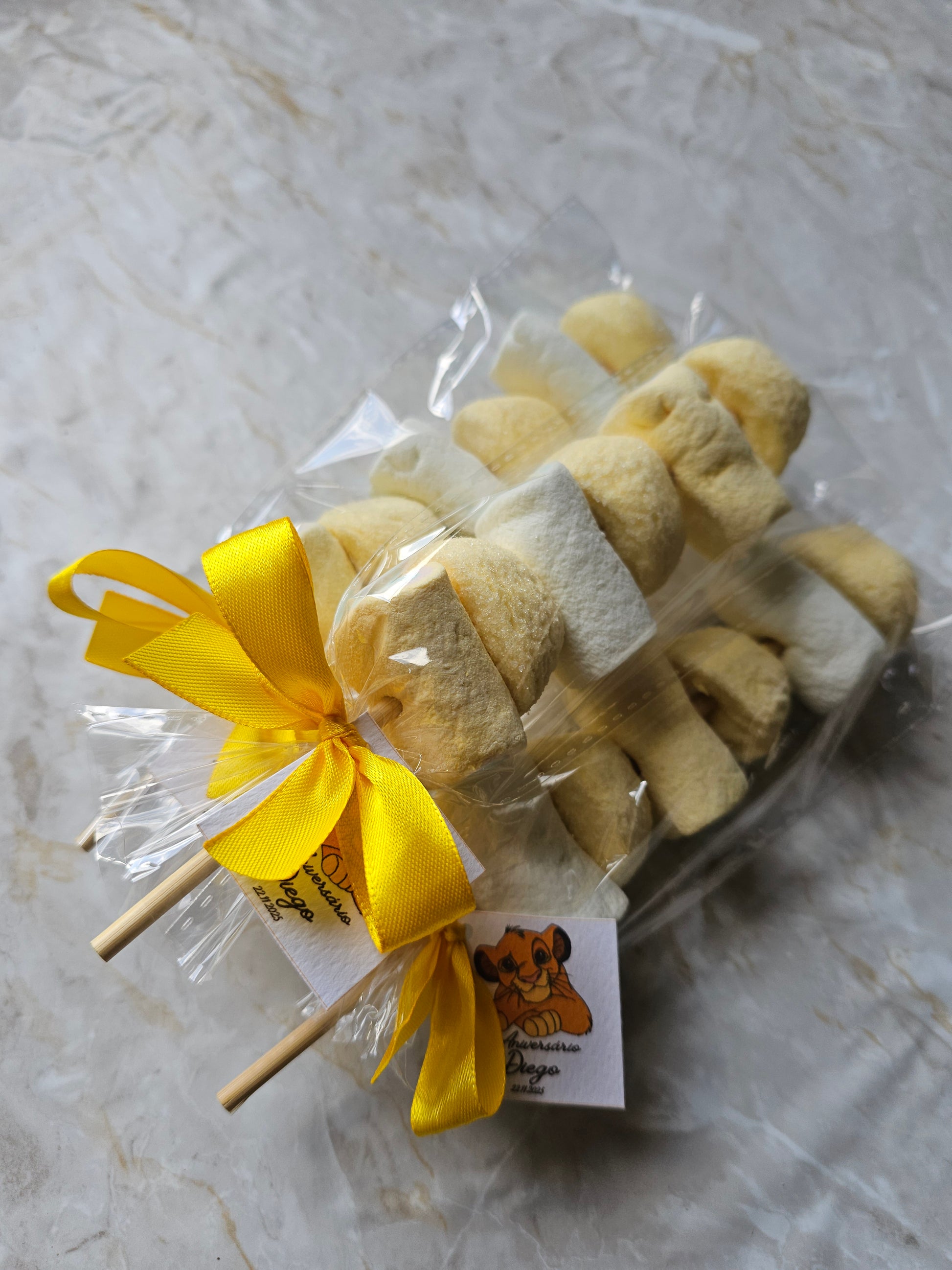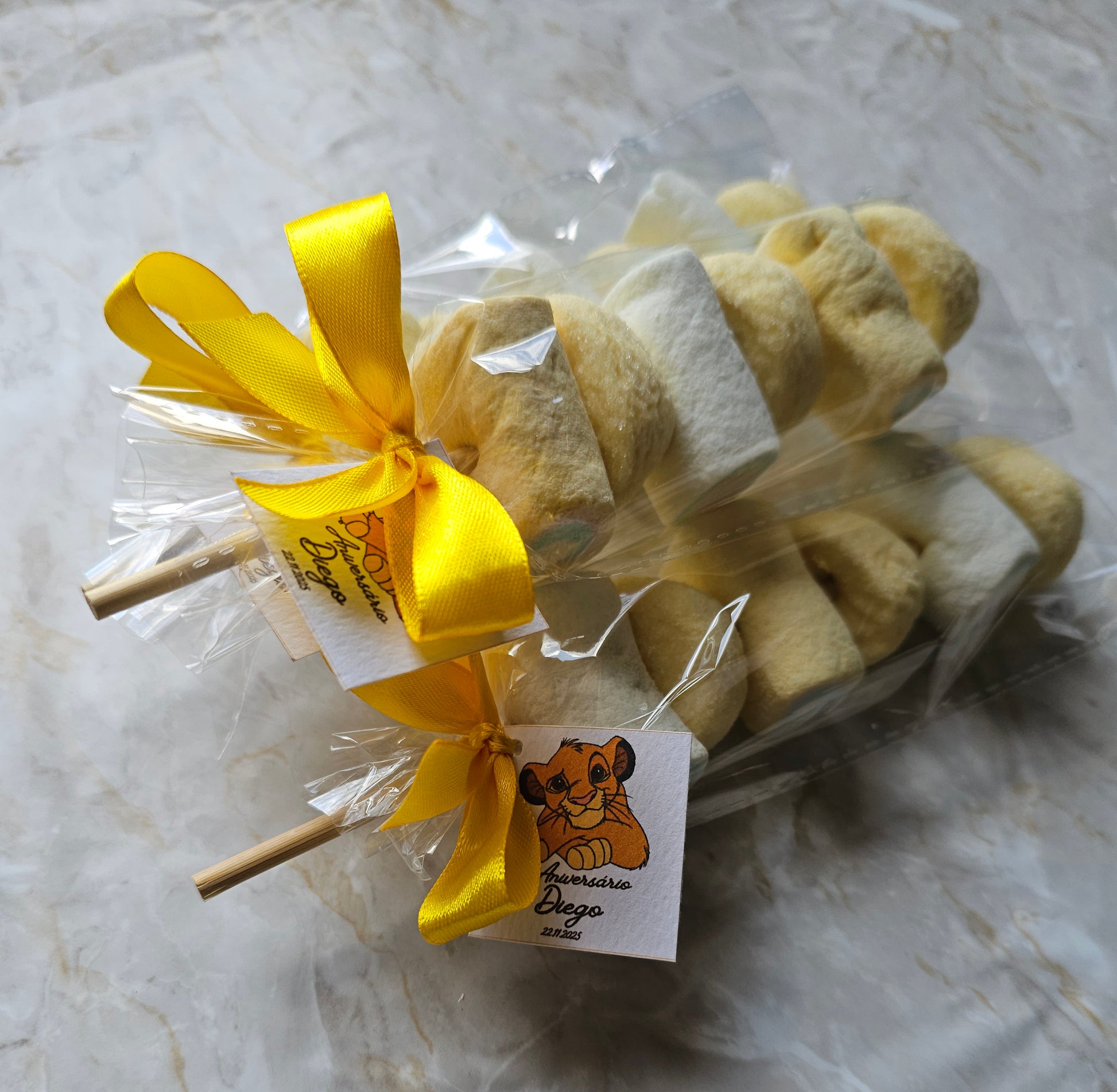 Espetadas de gomas no tema "Simba" com etiqueta personalizada.